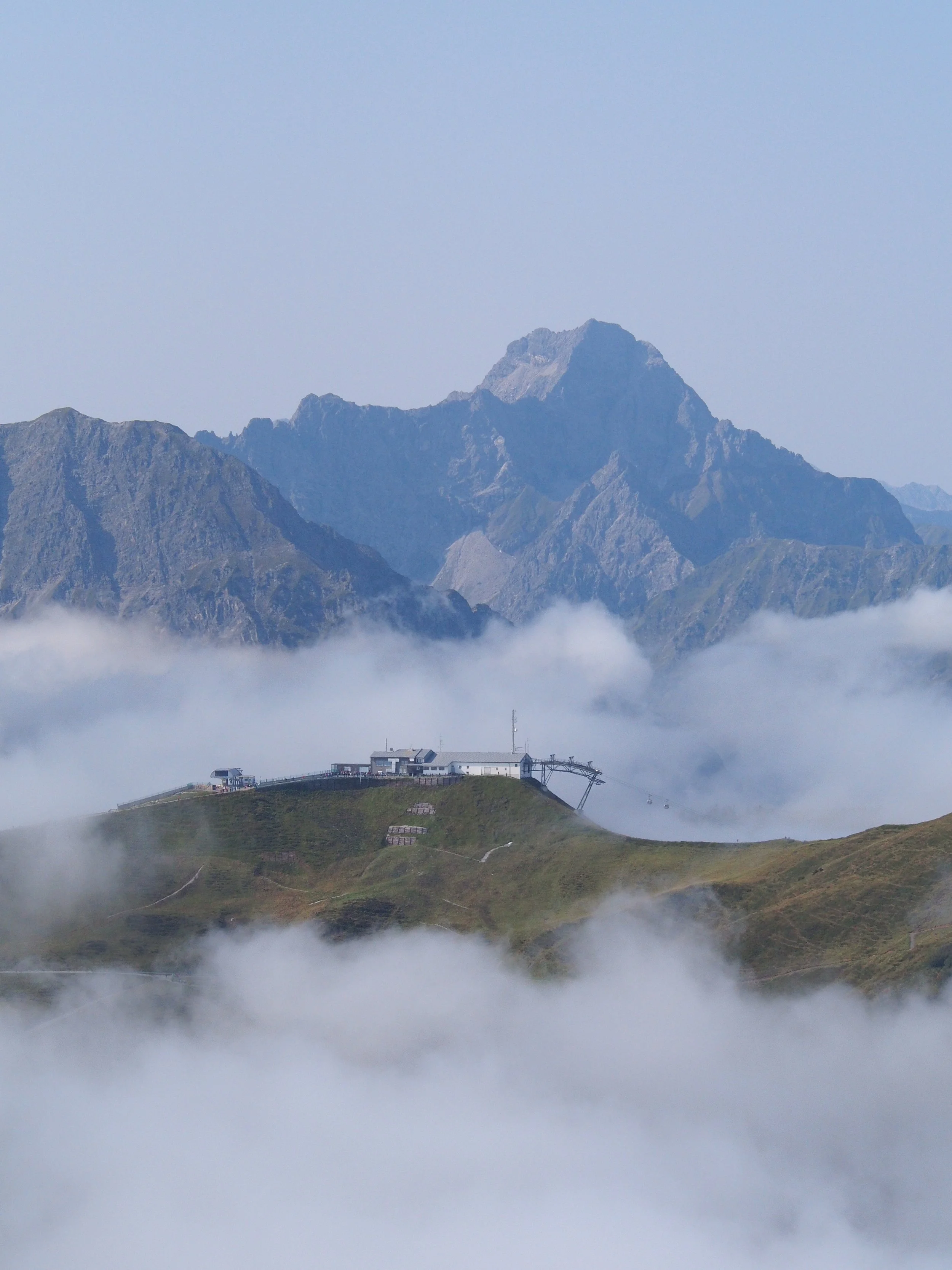 Als ich mit der Bahn oben am Fellhorn ankam, sah man die schräge Bergspitze des hohen Ifen über den Wolken. Darunter noch in den Wolken die Weiten des Gottesackerplateaus. Dann lichteten sich die Wolken……einfach unbeschreiblich!