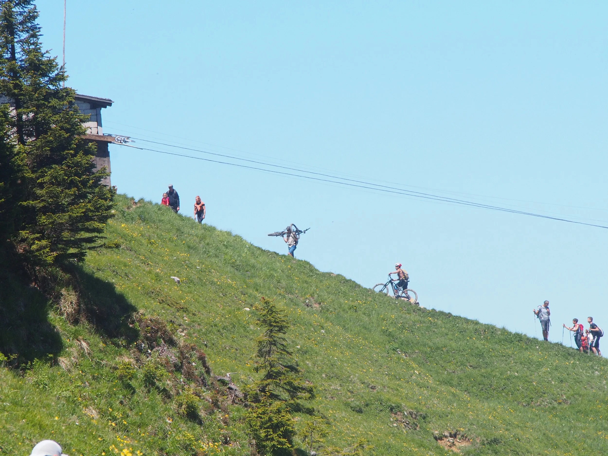 Ich finde den Aufstieg ziemlich anstrengend, da es fast ohne Unterbrechung steil bergauf geht. Anderen ist das nicht anstrendend genug. Sie tragen noch ihre Fahrräder hinauf auf den Berg :0O